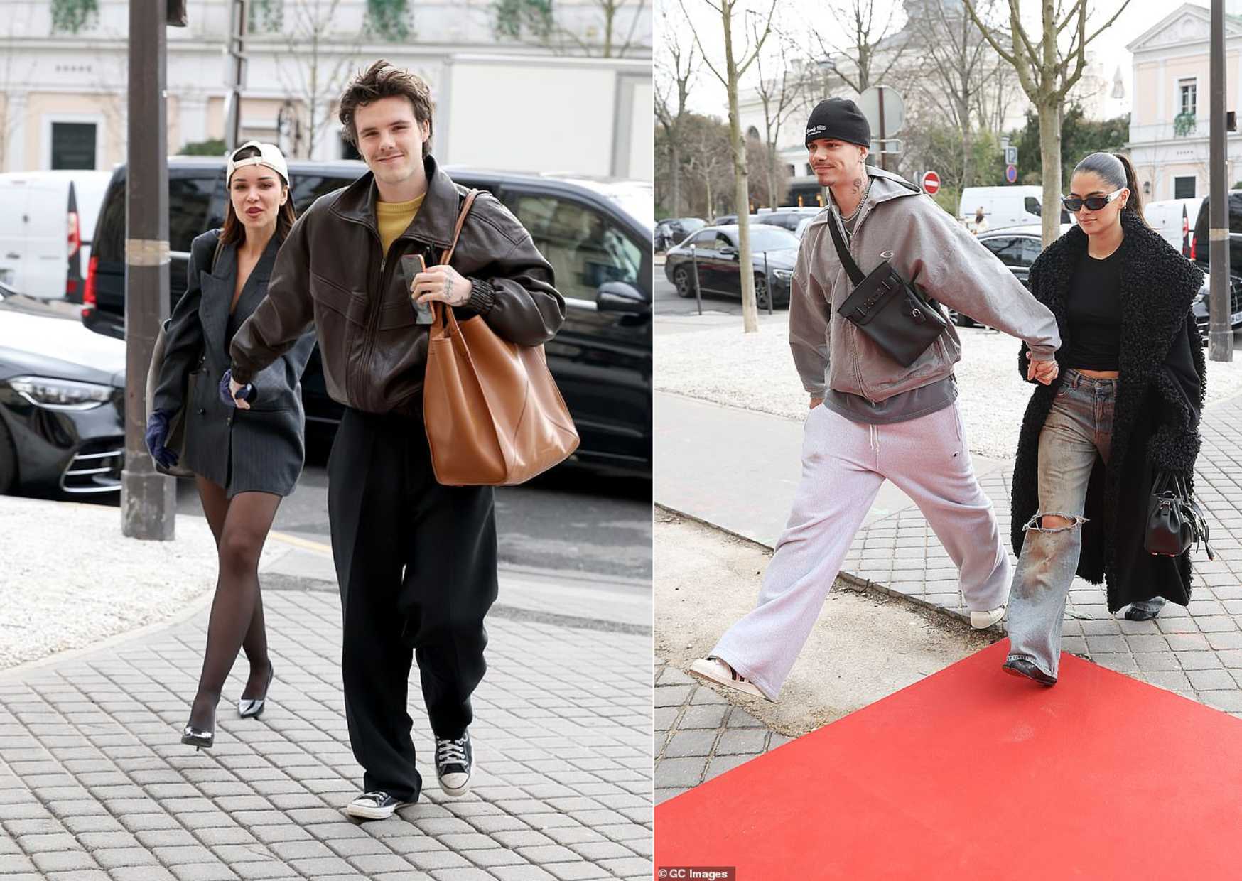 Cruz and Romeo Beckham show off playful defiance towards estranged brother Brooklyn as they enjoy Paris Fashion Week with their girlfriends