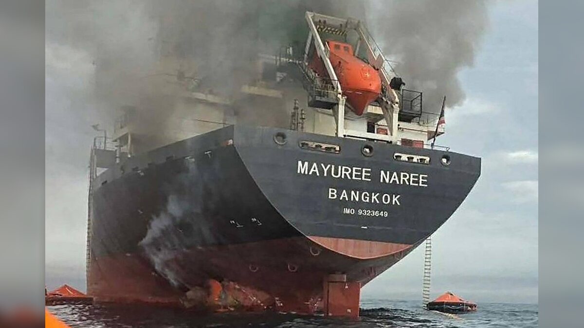 Cargo Ship Fire After Suspected Projectile Attack
