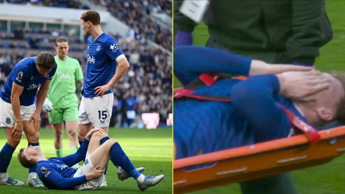 The 23-year-old was stretchered off late in Everton’s 2-1 loss to Liverpool, a moment that immediately raised concerns among fans and staff.