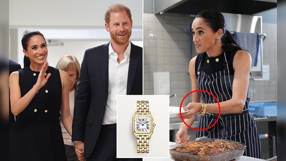 Her accessories included $1,118 yellow-gold heart earrings from Australian brand Real Fine Studio, a Tiffany gold bracelet, and a gold Cartier Tank Française watch widely believed to have once belonged to Harry’s mother, Princess Diana, with an estimated value of over $41,000.
