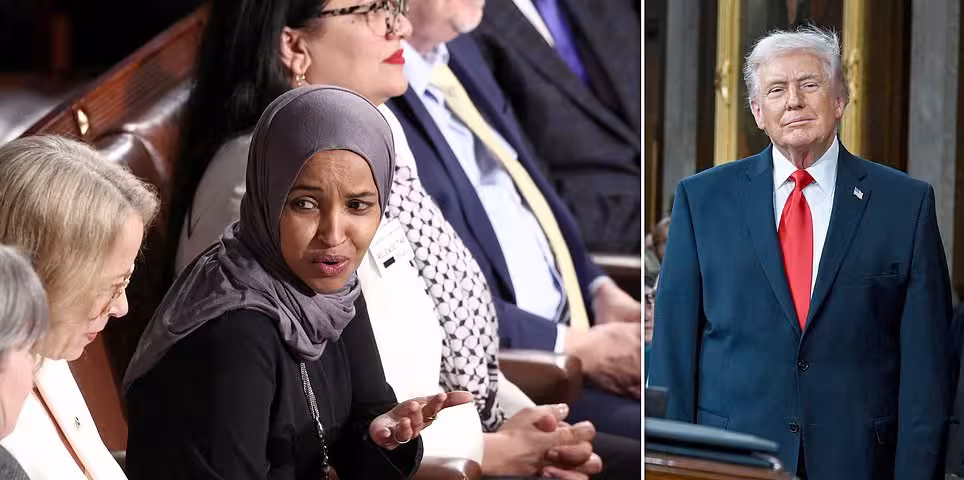 Representative Ilhan Omar appeared emotional when Trump described crime and alleged fraud in Minnesota involving Somali immigrants.